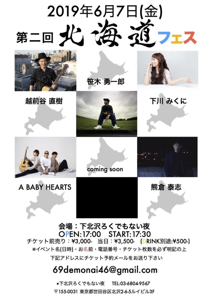 6/7 (fri) 『第二回 北海道フェス』@下北沢ろくでもない夜
